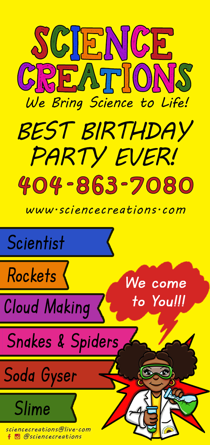 These parties strike a delightful balance between entertainment and education. We're flexible with locations, accommodating both indoor and outdoor venues, and we cater to classroom parties, girl scouts, Boy Scouts, and other special events. For an extra special touch, the birthday child gets the opportunity to become a Jr. Scientist, assisting our expert in conducting captivating experiments perfect for photos. Moreover, every party-goer can partake in a cool chemical reaction experiment, creating silly putty slime to take home as a memorable souvenir. And if you're looking to elevate the excitement, consider upgrading your party with a soda geyser pressure experiment or a fireworks rocket that soars up to 100 feet in the air!